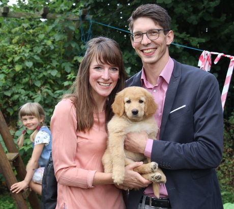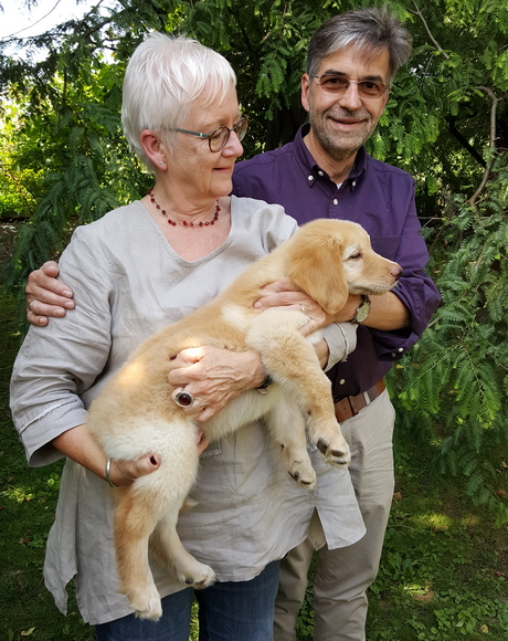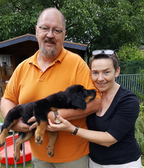 Hündin hat ihre Besitzer Annette und Maximilian von Eerde