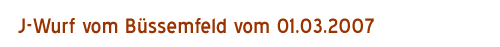Alle Hunde aus dem J-Wurf vom Büssemfeld haben an der Nachzuchtbeurteilung (NZB) teilgenommen: Janosch in Österreich am 27.10.07, Jasper, Jukon, Jaska und Jule in Do.-Aplerbeck am 03.11.07. Über die Bereitschaft, ihre Hunde vorzustellen und dafür weite Anreisen in Kauf zu nehmen, haben wir uns sehr gefreut. Vielen Dank!Bilder zur Nachzuchtbeurteilung gibt´s hier!