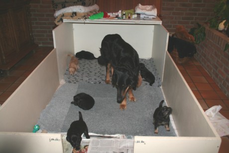 verlässt Hanna ihre Wurfkiste nicht mehr, bis der erste Welpe,
