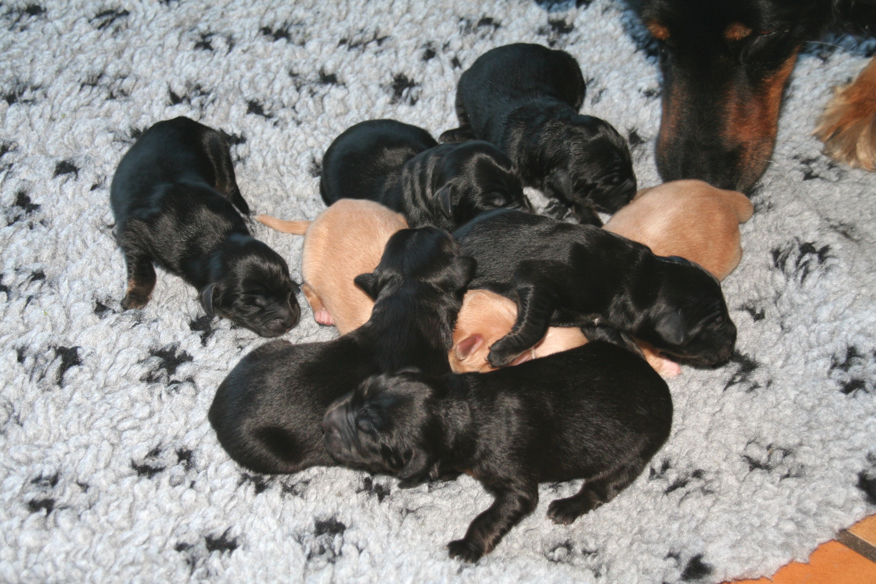 Die Welpen sind jetzt - nach 14 Tagen - zum ersten Mal entwurmt.