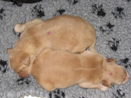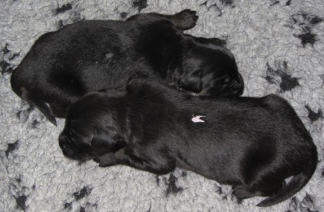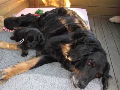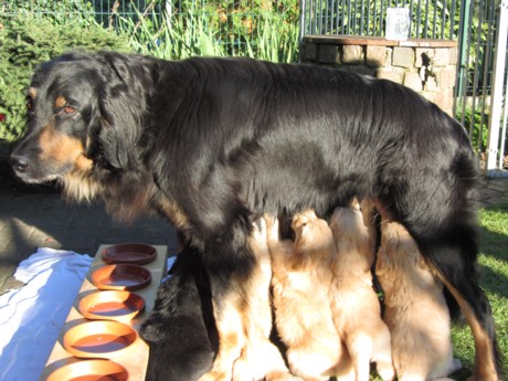 Eine Woche nach ihrer Geburt haben Max und Moritz am 23.11. die Regenbogenbrücke überquert. Ihr Saugreflex funktionierte nur noch bedingt, und trotz größter Mühe, sie mit Welpenmilch zu ernähren, konnten wir sie nicht am Leben erhalten. Wir sind unendlich traurig und bitten um Verständnis, dass wir zur Zeit keine Besuche empfangen möchten. Gott sei Dank wachsen und gedeihen die zehn anderen Welpen und haben teilweise schon ihr Geburtsgewicht verdoppelt. Hanna geht es sehr gut. Sie ist eine fürsorgliche Mutter.