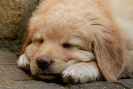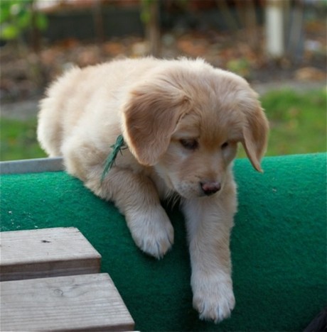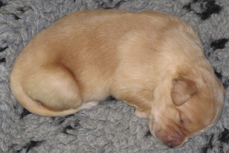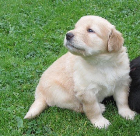 Ein blonder Welpe wird geboren.