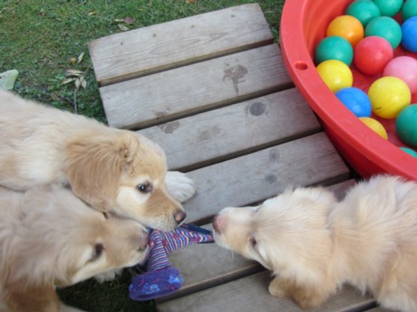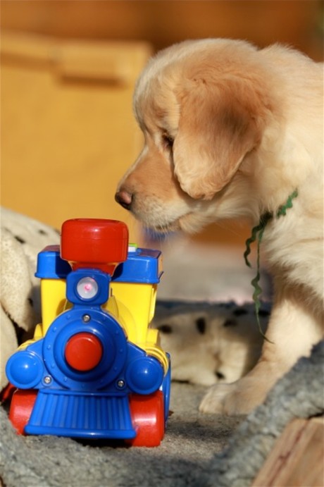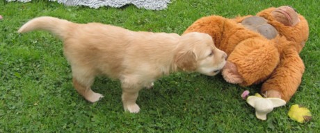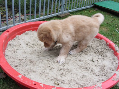 Es macht ja richtig Spaß, wenn die Welpen an den Socken schnuppern.