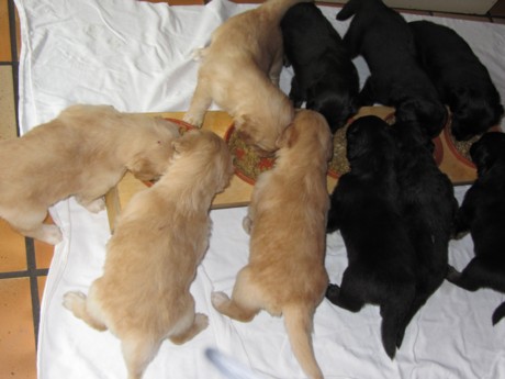 Am 19.10.2011 war Zwischabnahme. Die Zuchtwarte Claudia und Brigitte haben die Welpen kontrolliert: Zähne, Rute, Bauchnabel. Alles in Ordnung, keine zuchtausschließende Fehler!! Wir sind glücklich!