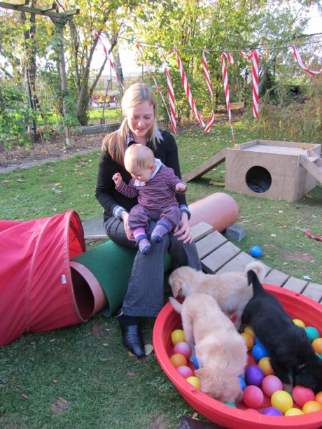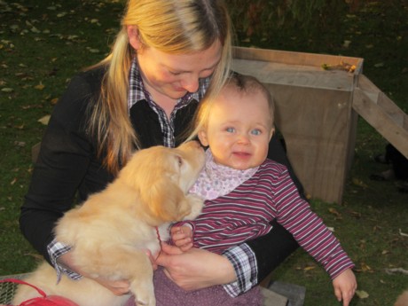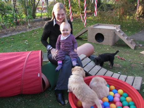 Unsere Enkelin Lilja auf Welpenbesuch