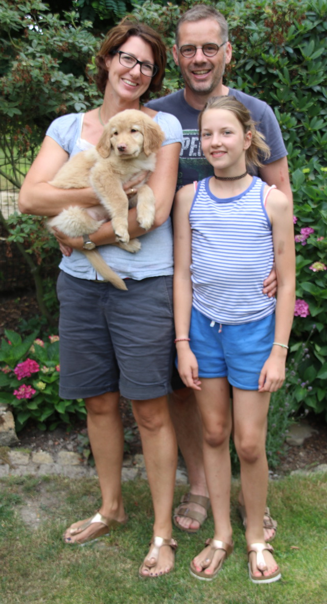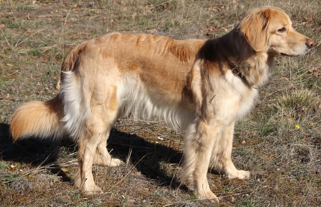 Eigentlich wollten wir mit Milva, unserer blonden Schönheit, nicht mehr züchten. Eigentlich! ... Da Milva nicht nur schön ist, sondern auch tolle Leistungen bringt, wurden wir überzeugt (oder doch überredet?), mit ihr einen weiteren Wurf zu wagen. Auch sind die Nachkommen aus dem N-Wurf besonders gut geraten, ohne Zucht ausschließende Fehler und mit guten HD-Ergebnissen.Wir planen also unseren O-Wurf. Als Partner für Milva haben wir einen hübschen (mehrere "vorzüglich" bei Zuchtschauen) und leistungsstarken Rüden aus Südwest-Frankreich ausgesucht: