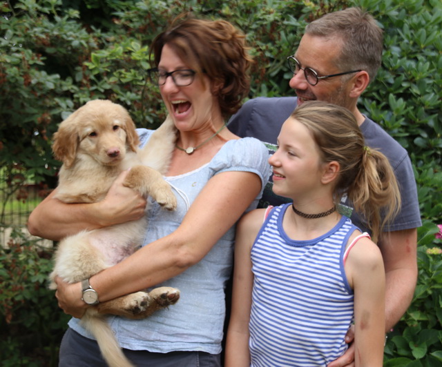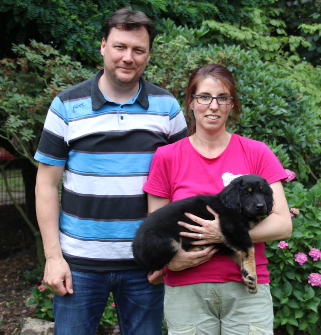 Andrea und Daniel freuen sich mit Orkan, der aber bei ihnen Oskar heißen wird.